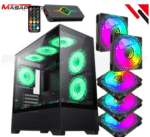 Kit GAMEMAX Case VISTA MB / MATX / lateral y frontal vidrio templado / marco metálico de acero / 1*USB3.0 + 2*USB2.0 / 1* audio combinado / Incluye P/Armar 5*fans ARGB 120mm + Controlador RGB AURA Sync + CR